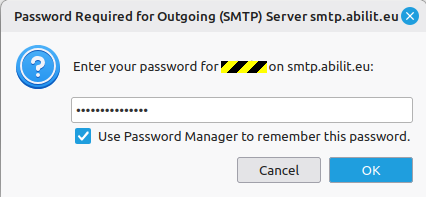 At the very first sent, your Thunderbird will ask you for the password:
