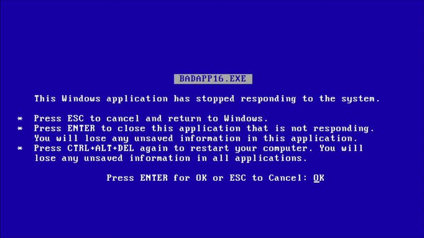 As Windows mimicked more or less multitasking (a “collaborative way“), any application that failed to return the control to the main Windows process lead to a general computer freeze, causing the need to physically reset the whole computer. That’s why PC “enjoyed” for so long a physical reset button, that some called the “continue button”…
